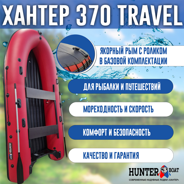 Лодка Хантер Travel 370 отличается продуманной конструкцией с высокой функциональностью. Диаметр баллона диаметром 52 см. даёт не только отличные мореходные характеристики, но и прекрасную устойчивость на воде, особенно в условиях волнения.